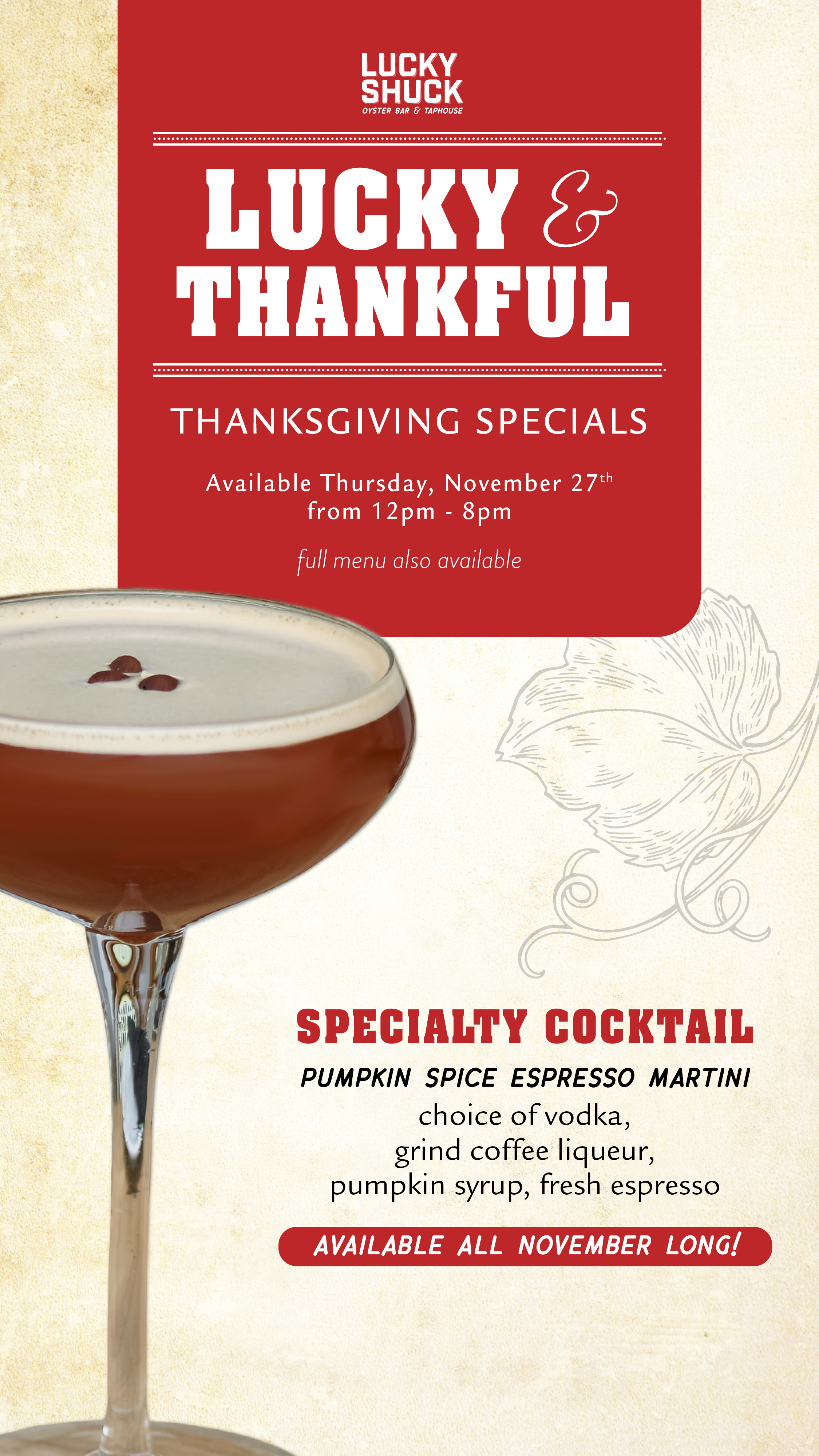 Join us for festive seasonal specials this Thanksgiving at Lucky Shuck!