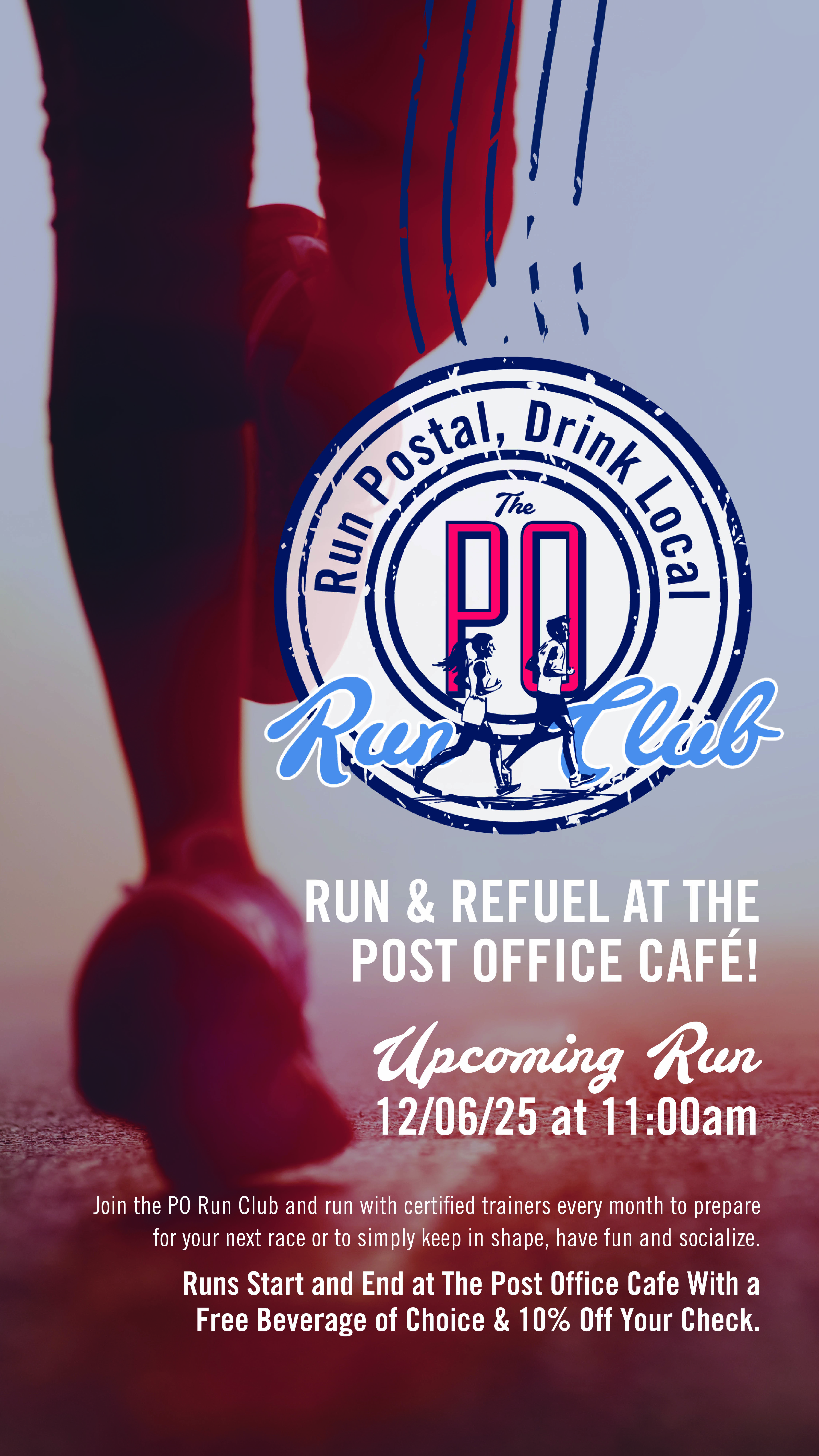 Runs Start and End at The Post Office Cafe With a Free Beverage and 10% Off Your Check.