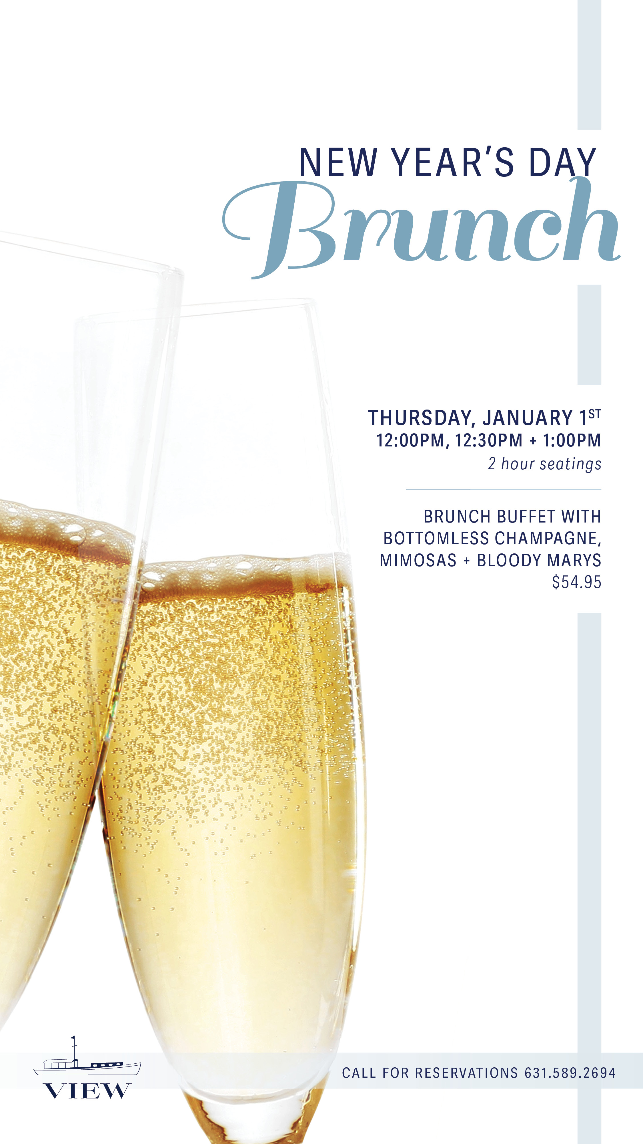 Buffet style brunch featuring bottomless champagne, mimosas + bloody marys.
