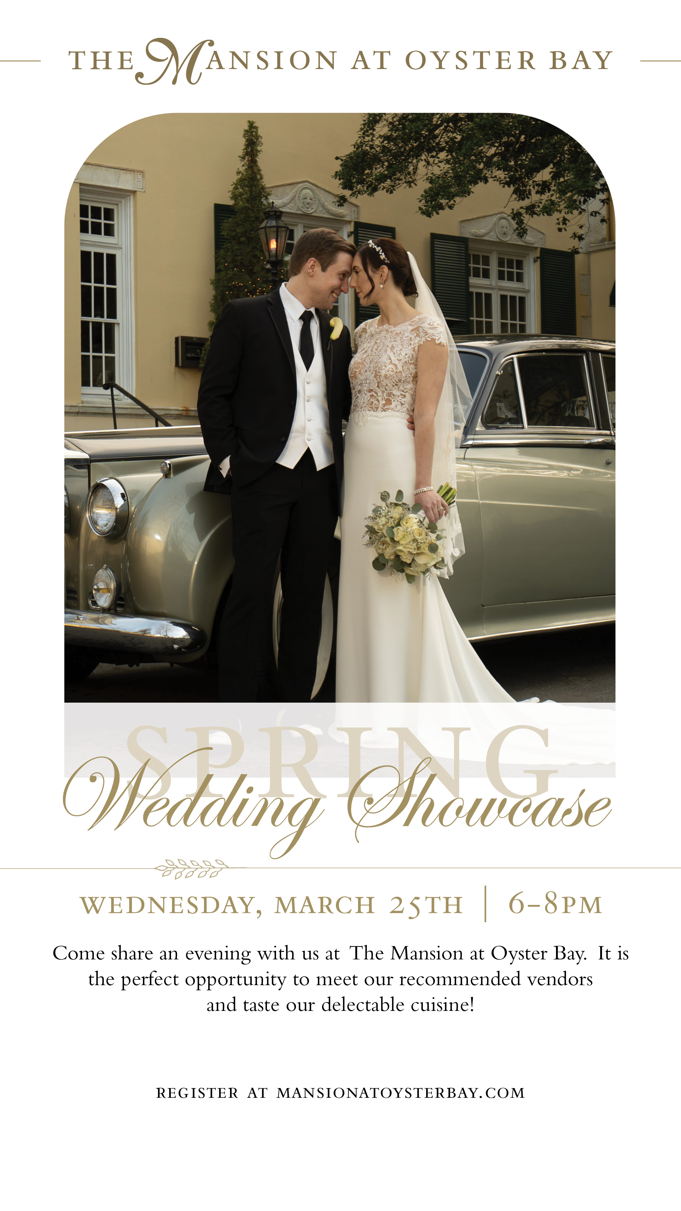 Come Share An Evening With Us At The Mansion At Oyster Bay! It is the perfect opportunity to meet our recommended vendors and taste our delectable cuisine!