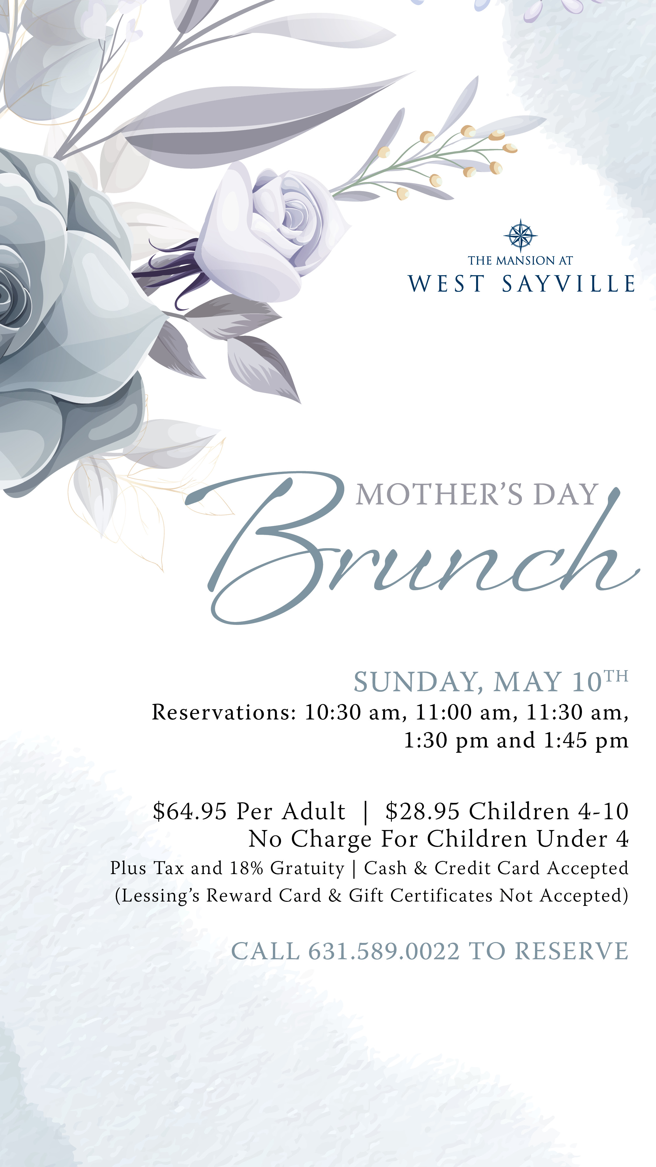 Reservations: 10:30 am, 11:00 am, 11:30 am, 1:30 pm and 1:45 pm